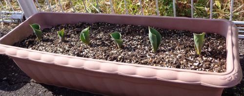 チューリップの芽も順調に育っています。