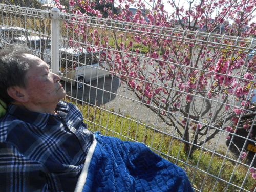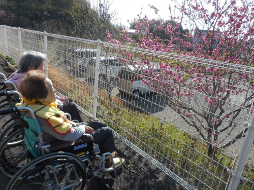 うららかな陽気の昼下がり、施設の庭に出てみました。